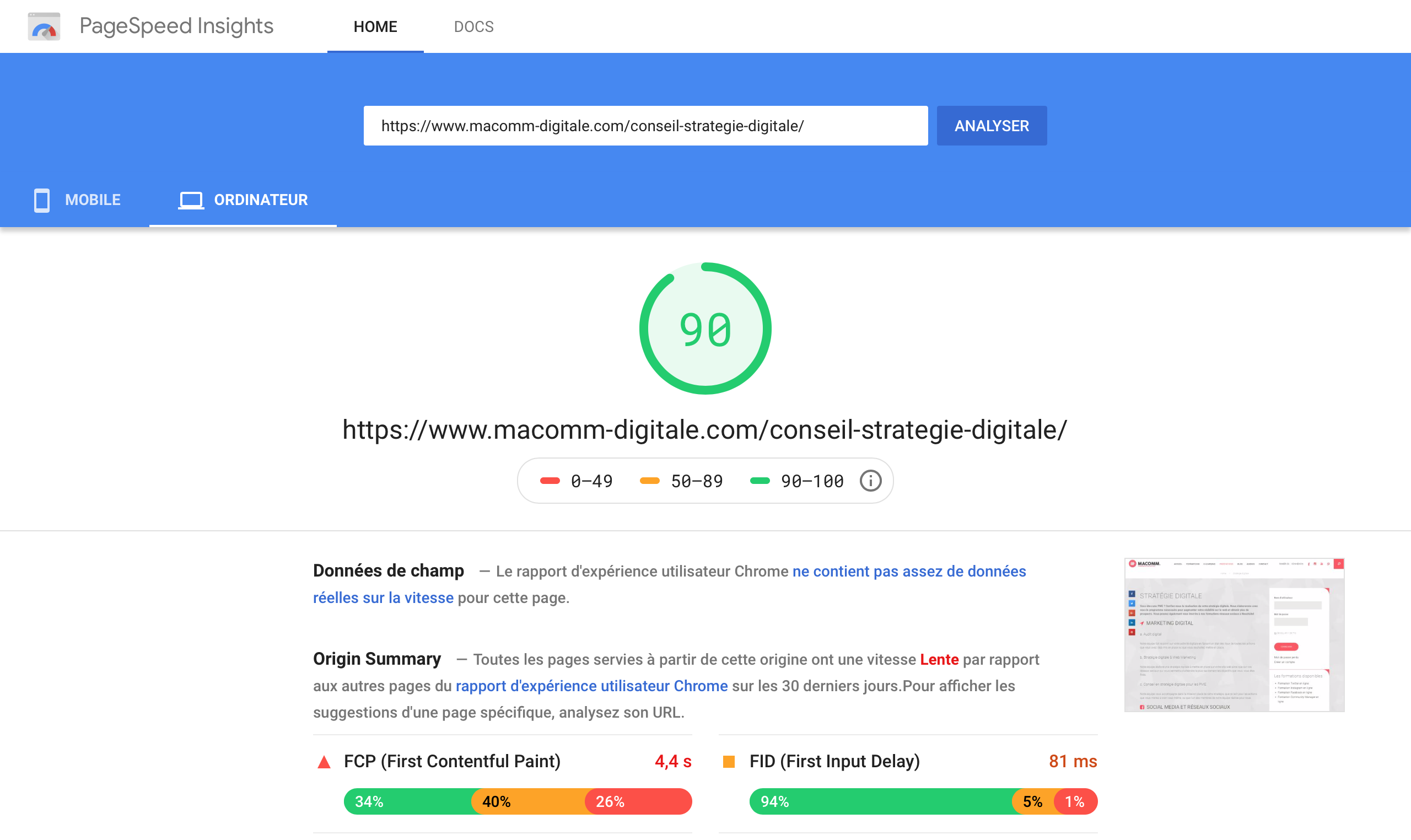 On vous encourage à vérifier le temps de chargement de vos pages web avec l’extension pagespeed insights qui est gratuite.
